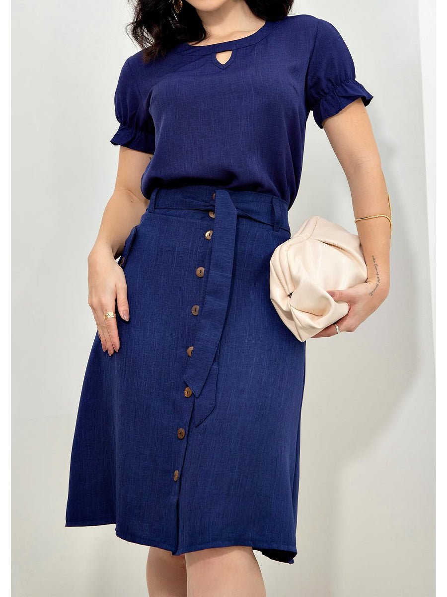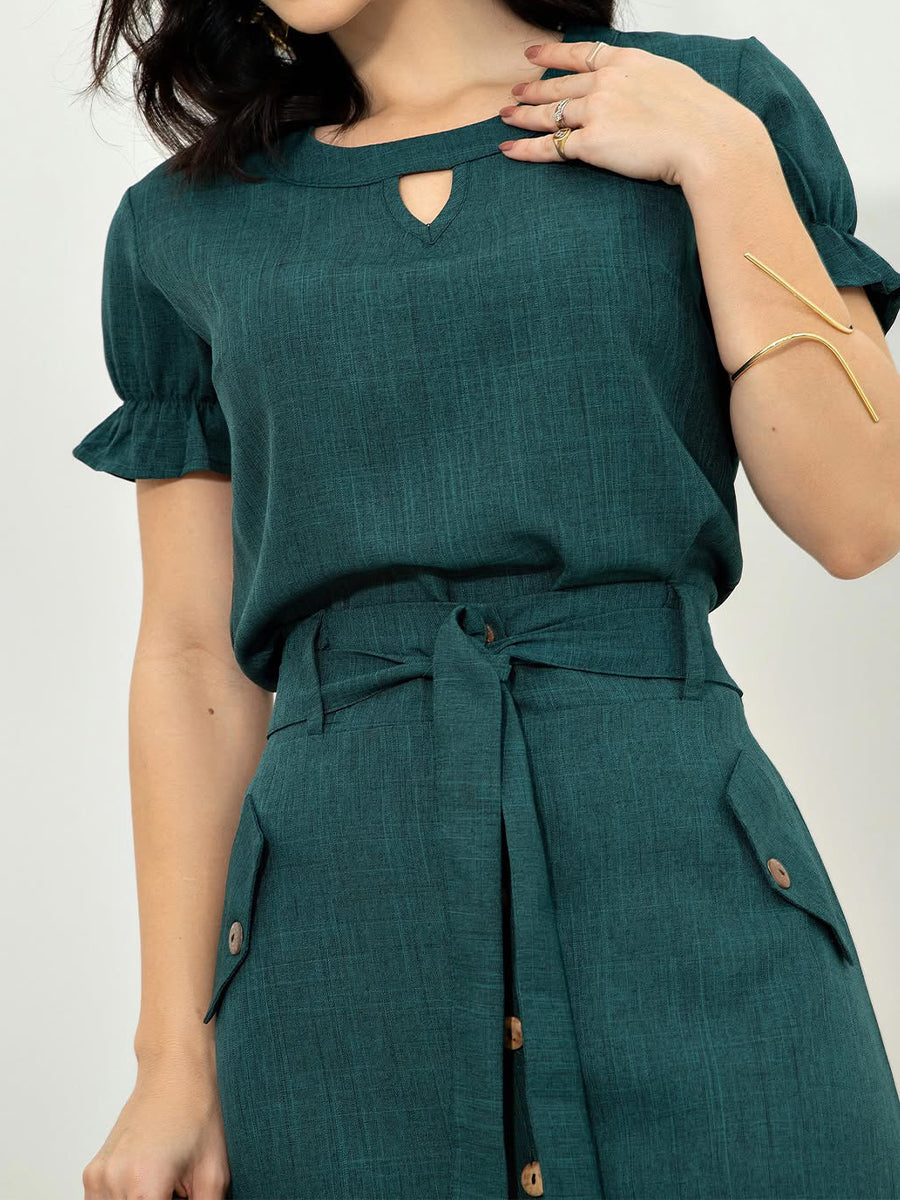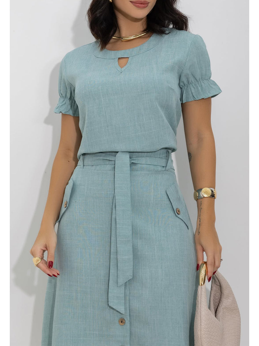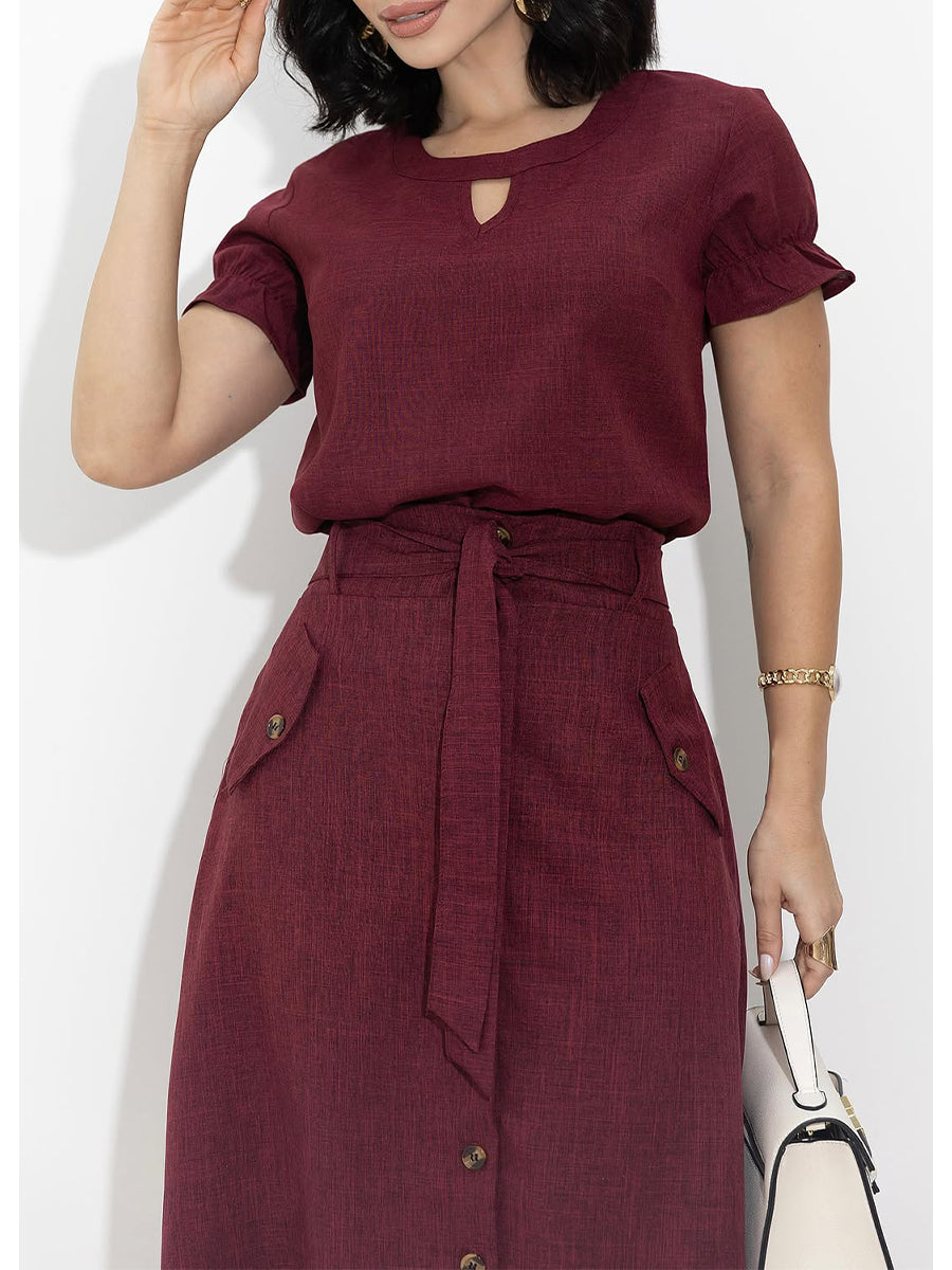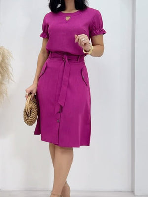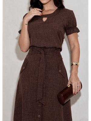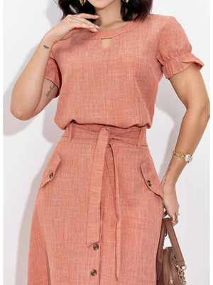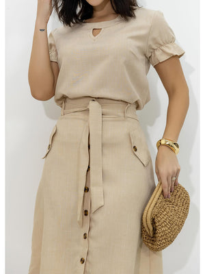 Women's Linen Cotton Short-sleeved Top and Tie Skirt Two-piece Set
