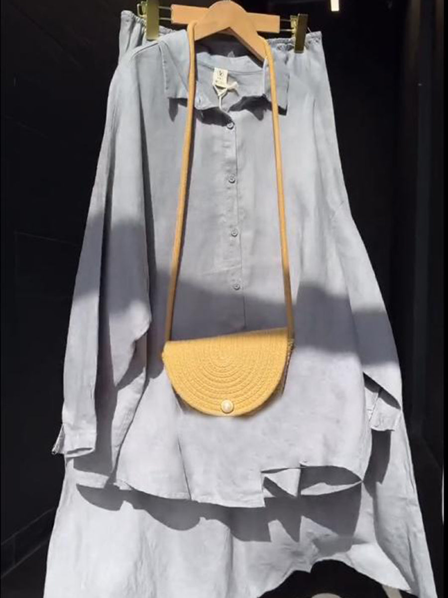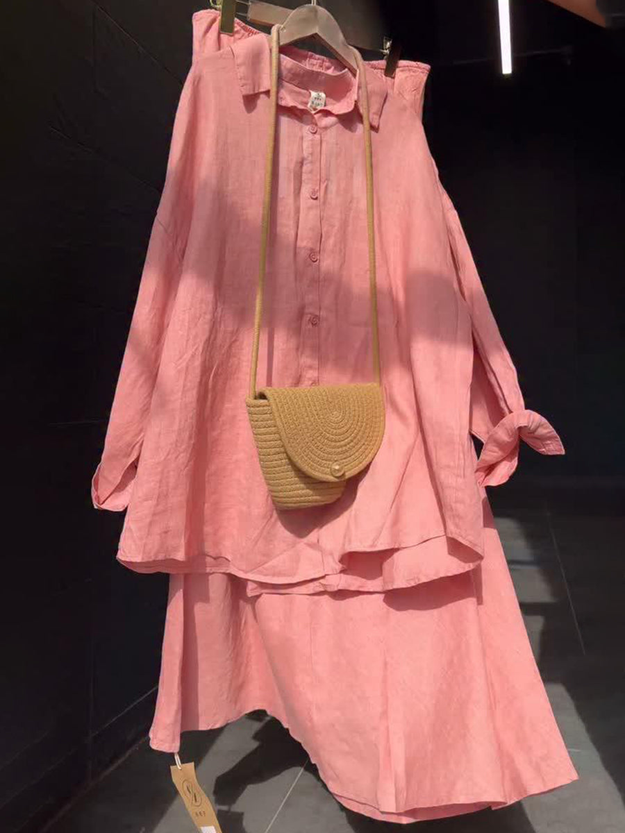 Classic Shirt and Skirt Linen Two-piece Suit