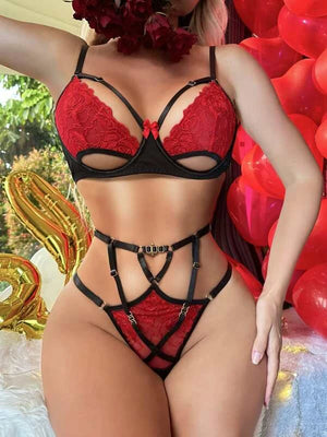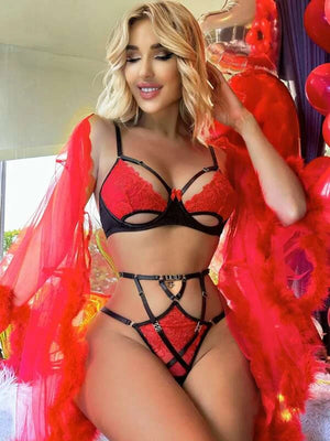 Cut Out Floral Embroidery Mesh Underwire Lingerie Set