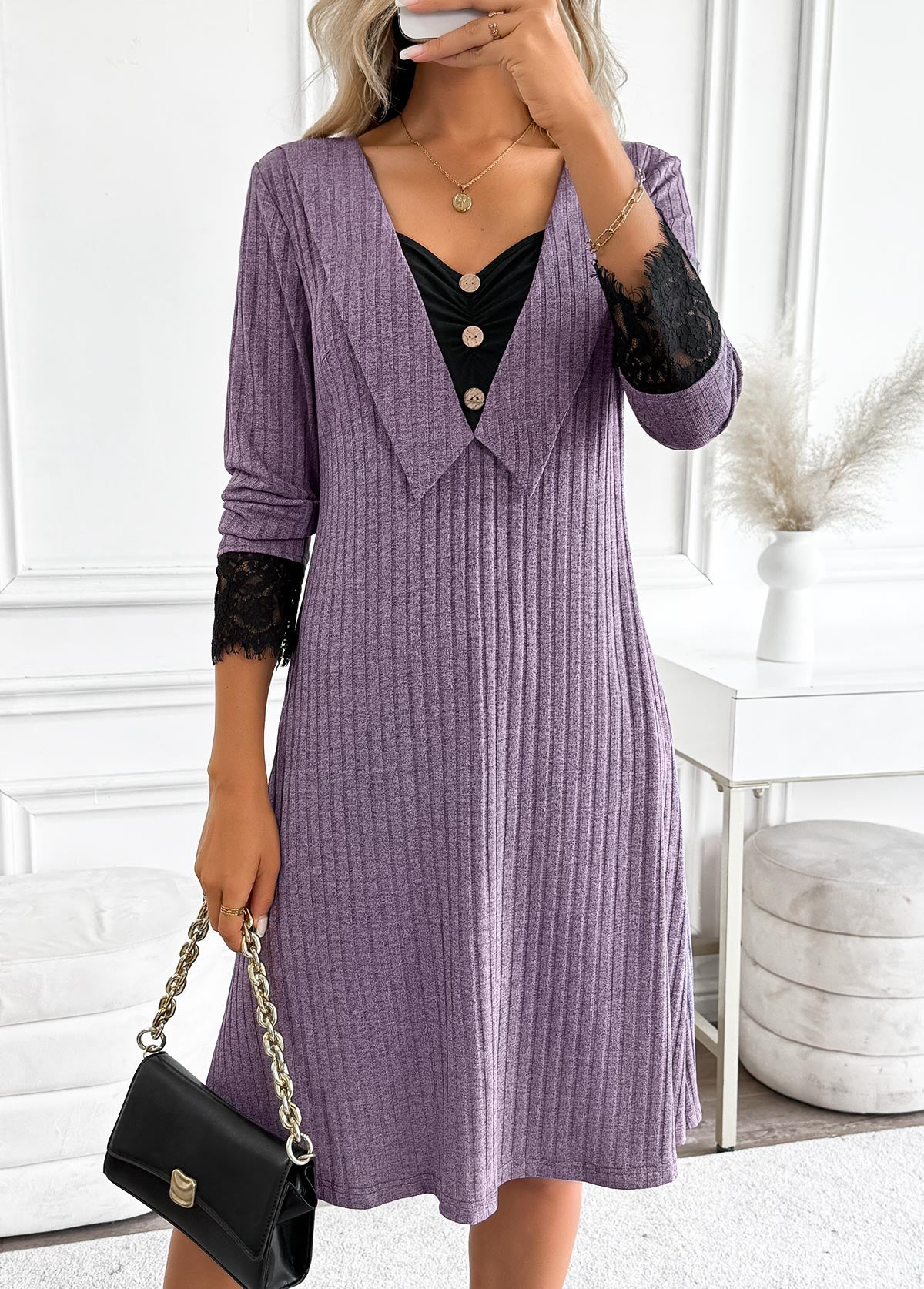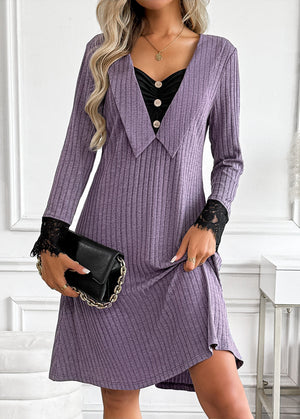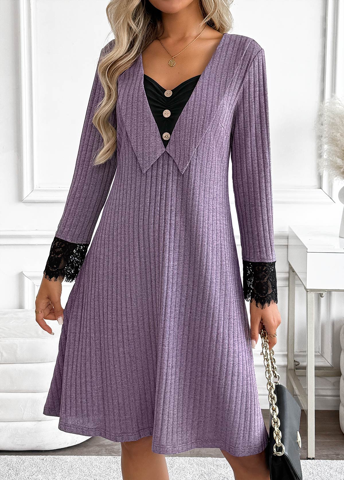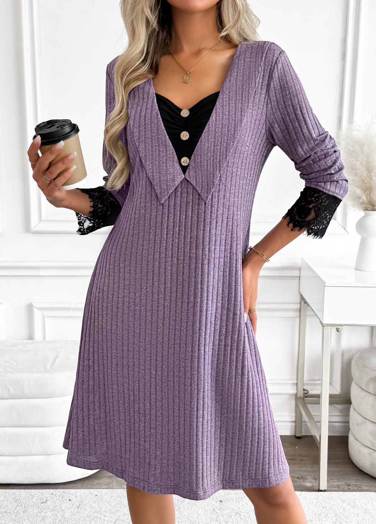 Dusty Purple Tummy Coverage Long Sleeve V Neck Dress