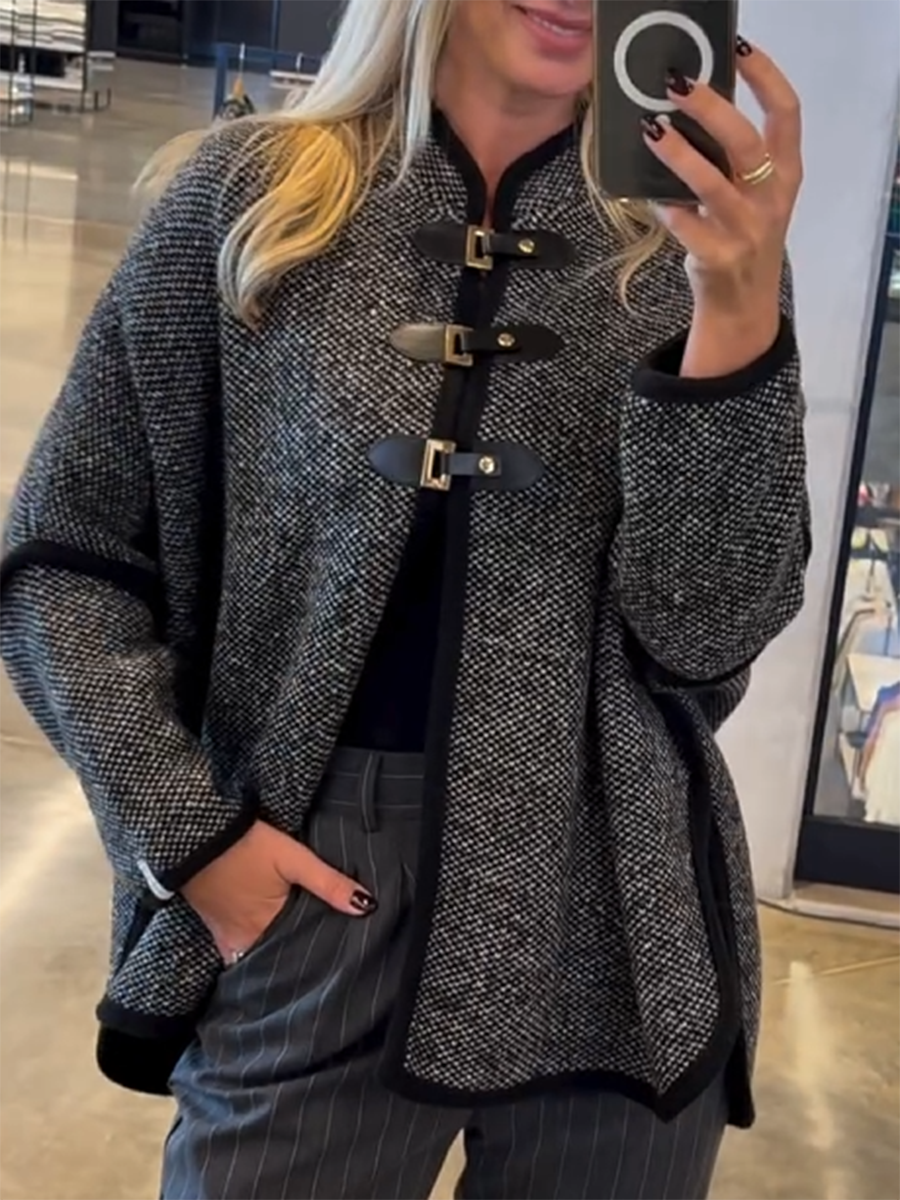 Women's Knitted Cardigan Jacket with Buckle