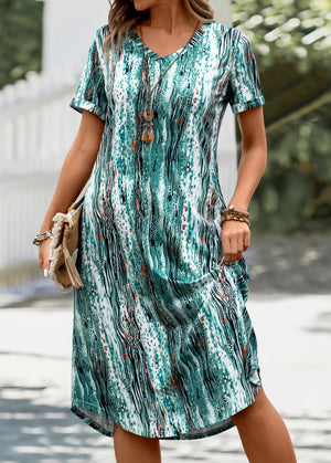 Mint Green Pocket Graffiti Print A Line Dress