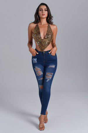 We’re obsessing over the Nichele Leopard Metal Top. A sexy leopard print top is not only a fashion icon but the key to your party today. Unique V-shaped neckline and lace-up at the back perfectly show the line of your back. You can choose to wear it with a cool pair of pants or a cute sexy skirt.