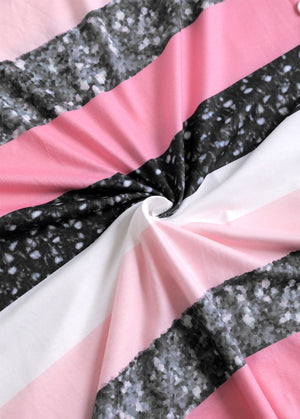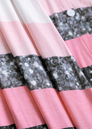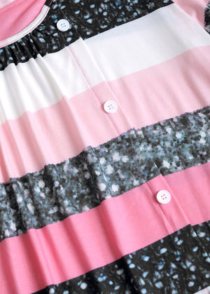 Pink Patchwork Striped A Line 3/4 Sleeve Dress