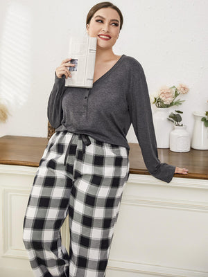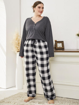 Plus Button Front Top & Buffalo Plaid Pants PJ Set
