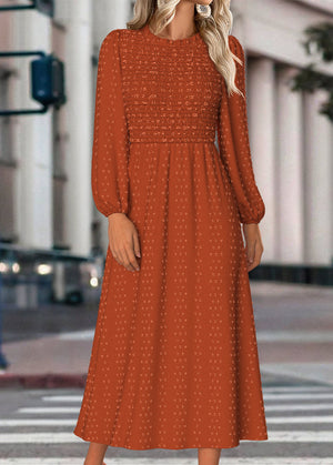 Terracotta Tummy Coverage Long Sleeve Round Neck Dress