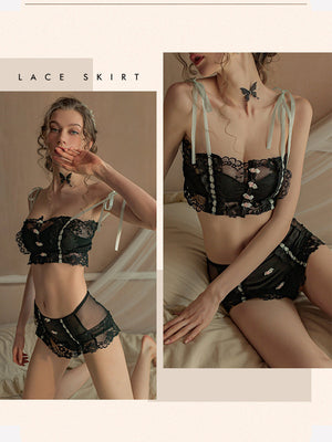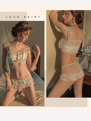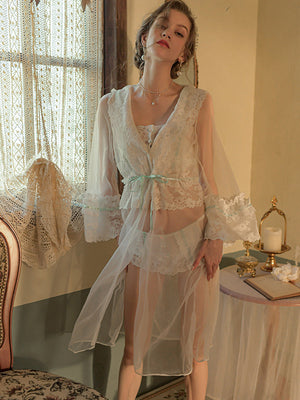 Three-piece Retro Sexy Rose Lace Sling Robe Sets