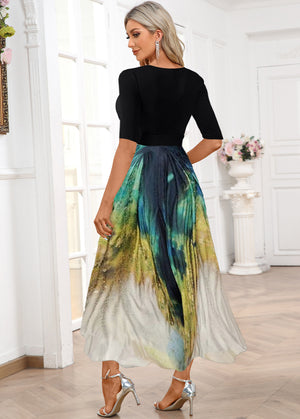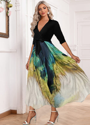 Tie Dye Print Plunging Neck Belted Maxi Dress
