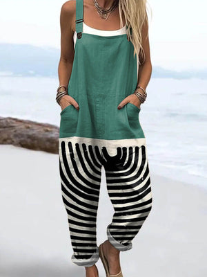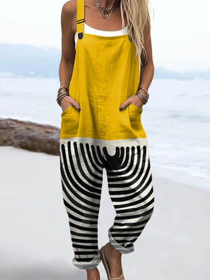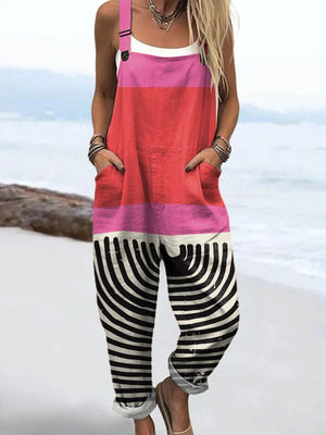 Women's Abstract Pattern Art Print Casual 100% Cotton Wide Leg Jumpsuit
