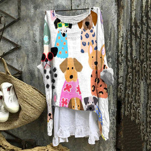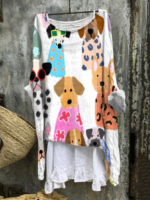 Women's Colorful Funny Cartoon Puppy Print Long Sleeve Blouse