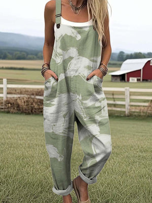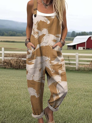 Women's Lovely Horse Pattern Art Print Casual 100% Cotton Wide Leg Jumpsuit