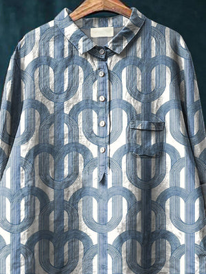 Contemporary Geometric Repeat Pattern Printed Women's Casual Cotton And Linen Shirt
