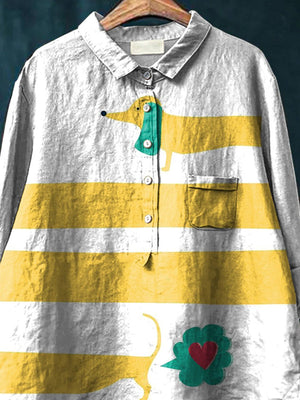 Lovely Dachshund Dog Graphic Printed Women's Casual Cotton And Linen Shirt
