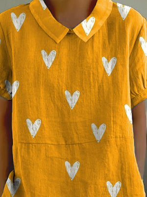 Lovely Hearts Repeat Pattern Printed Women's Casual Cotton And Linen Shirt