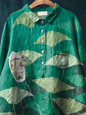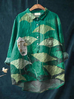 Manta Ray Fish Migration Art Printed Women's Casual Cotton And Linen Shirt