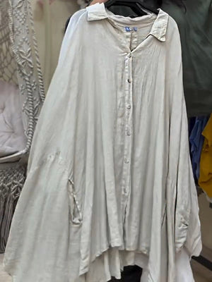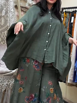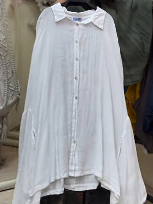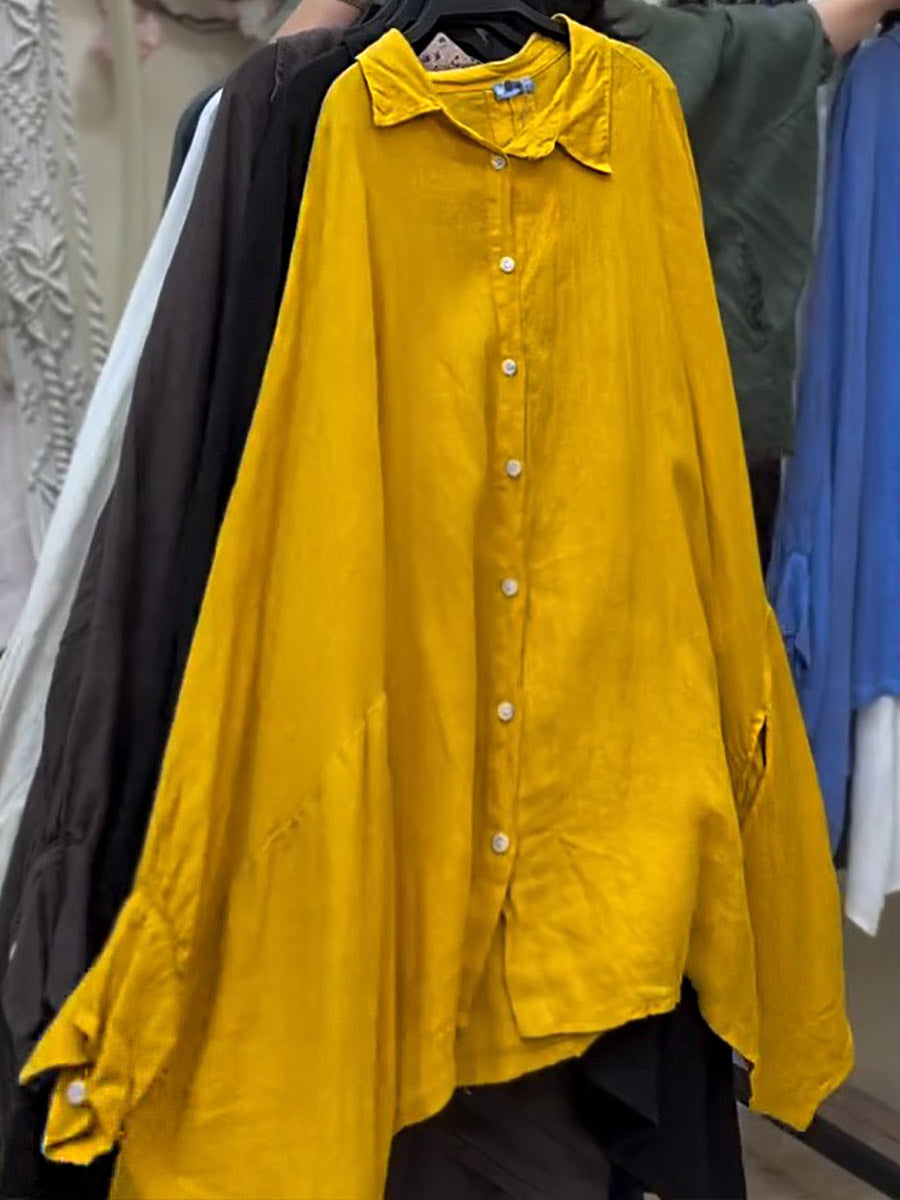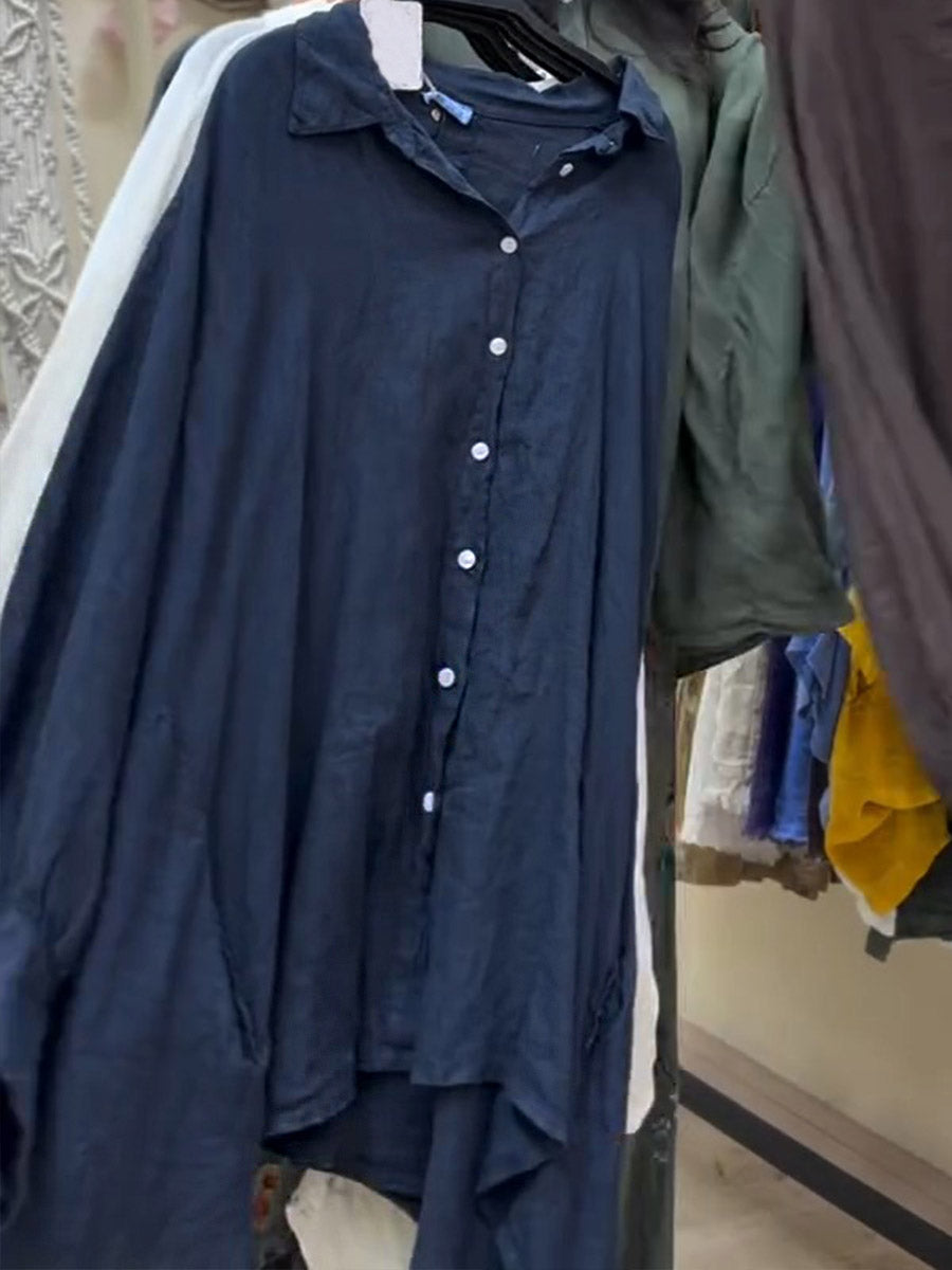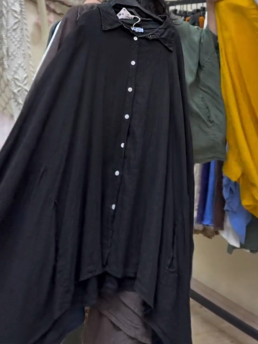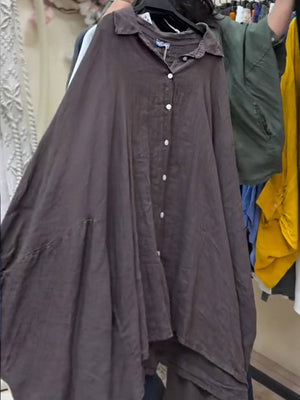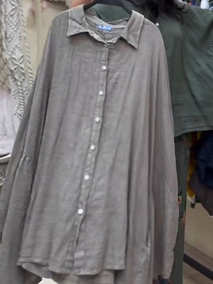 Women's Lapel Batwing Sleeve Casual Loose Cotton Shirt