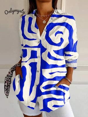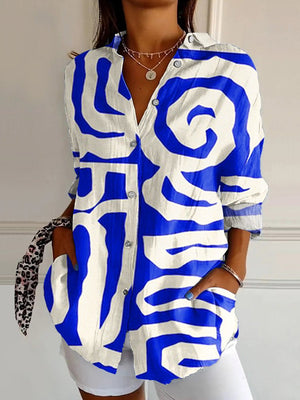 Women's  Minimalism Abstract Geometry Retro  Art  Print Casual Cotton Shirt