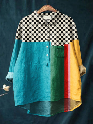 Women's Retro Poster Art Print Casual Cotton And Linen Shirt