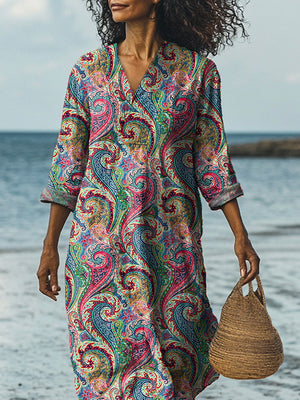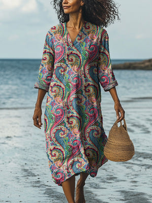 Colorful Ethnic Summer Pattern Printed Women's Dress