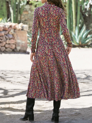 Dream Wilderness Flower Print Knitted Turtleneck Midi Dress
