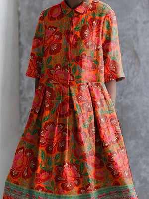 Ethnic Style Summer Floral Pattern Printed Women's Pocket Cotton Dress