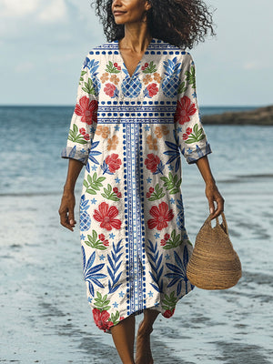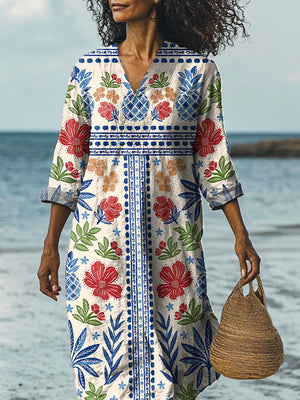 Ethnic Style Summer Fruit And Floral Pattern Printed Women's Dress