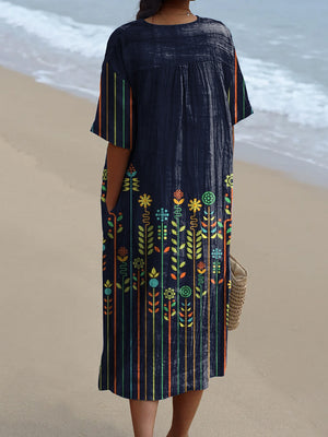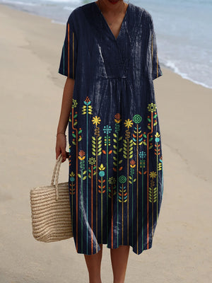 Geometric Floral Pattern Printed Women's Flowy Dress