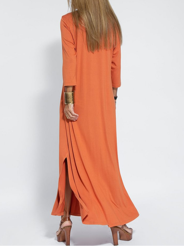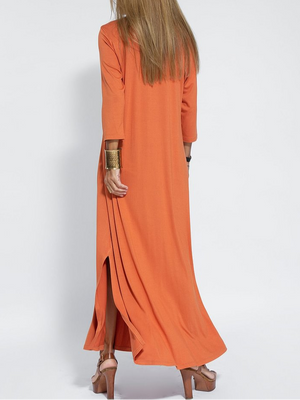 The Oriana Dress offers effortless style with its v-neck and loose-fitting design. Crafted from a soft, stretchy fabric, this maxi dress ensures all-day comfort while hugging you in all the right places. Perfect for any occasion¡ªwhether it¡¯s a casual outing or a special event¡ªthis dress is made for the fashion-forward woman who values both elegance and ease.