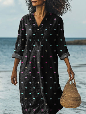 Petite Heart Repeat Pattern Printed Women's Dress