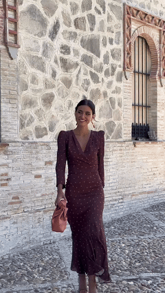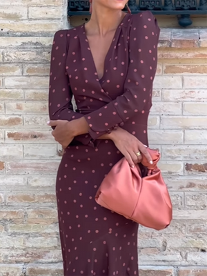 Retro Elegant V-neck Polka Dot Print Midi Dress