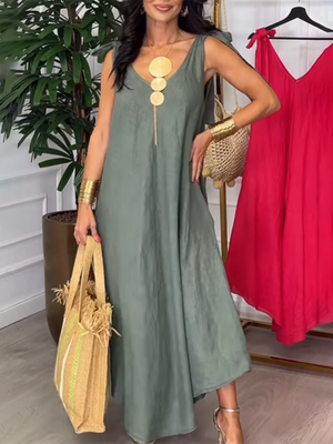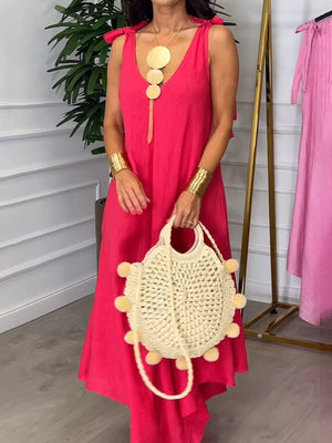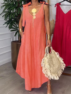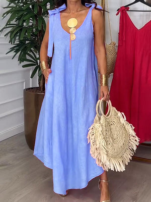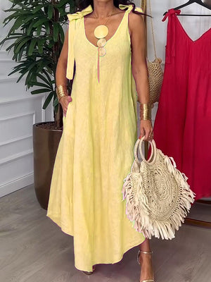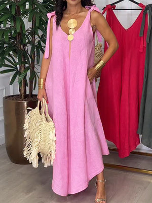 Tie-strap Bow Cotton and Linen Dress