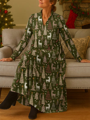 Women's Art Cedar Elk Print V-Neck Midi Dress