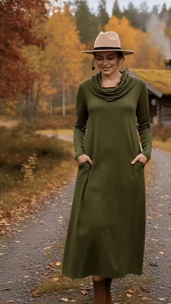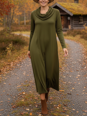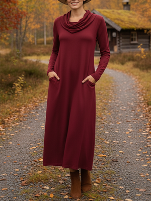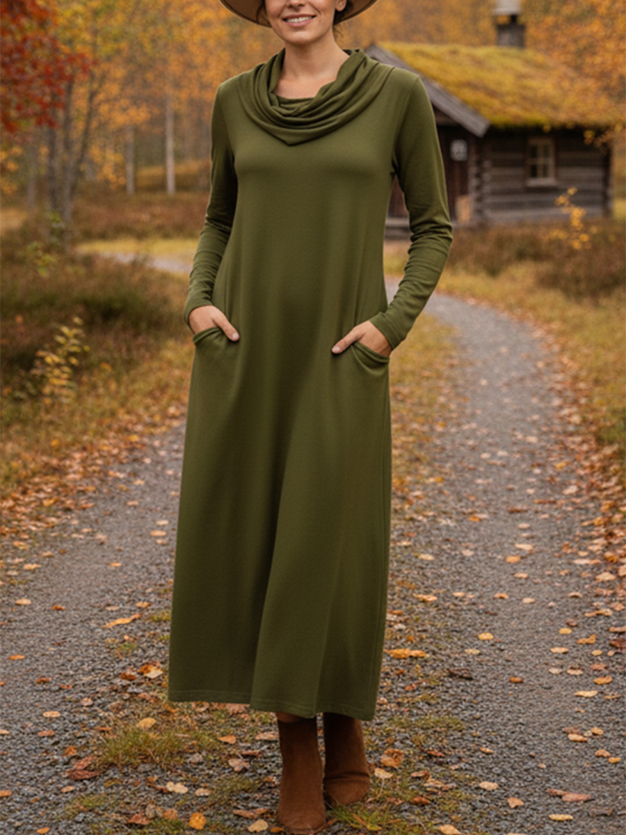 Women's Elegant Pile Neck Pocket Solid Color Knitted Dress