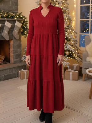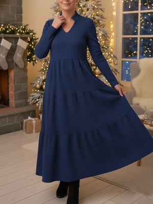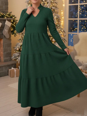 Women's Elegant V-Neck Multi-Layered Hem Knitted Dress