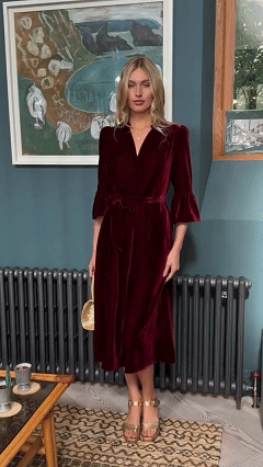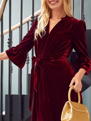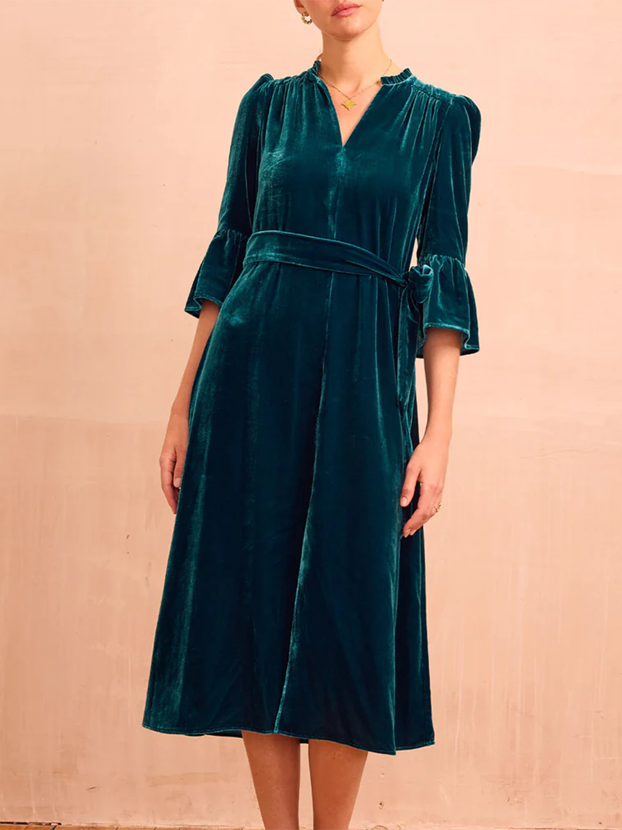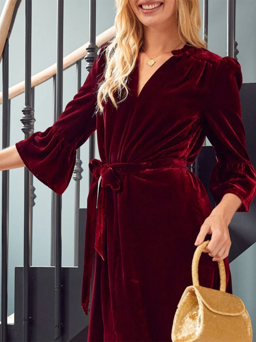 Women's Elegant V-neck Velvet Strap Midi Dress