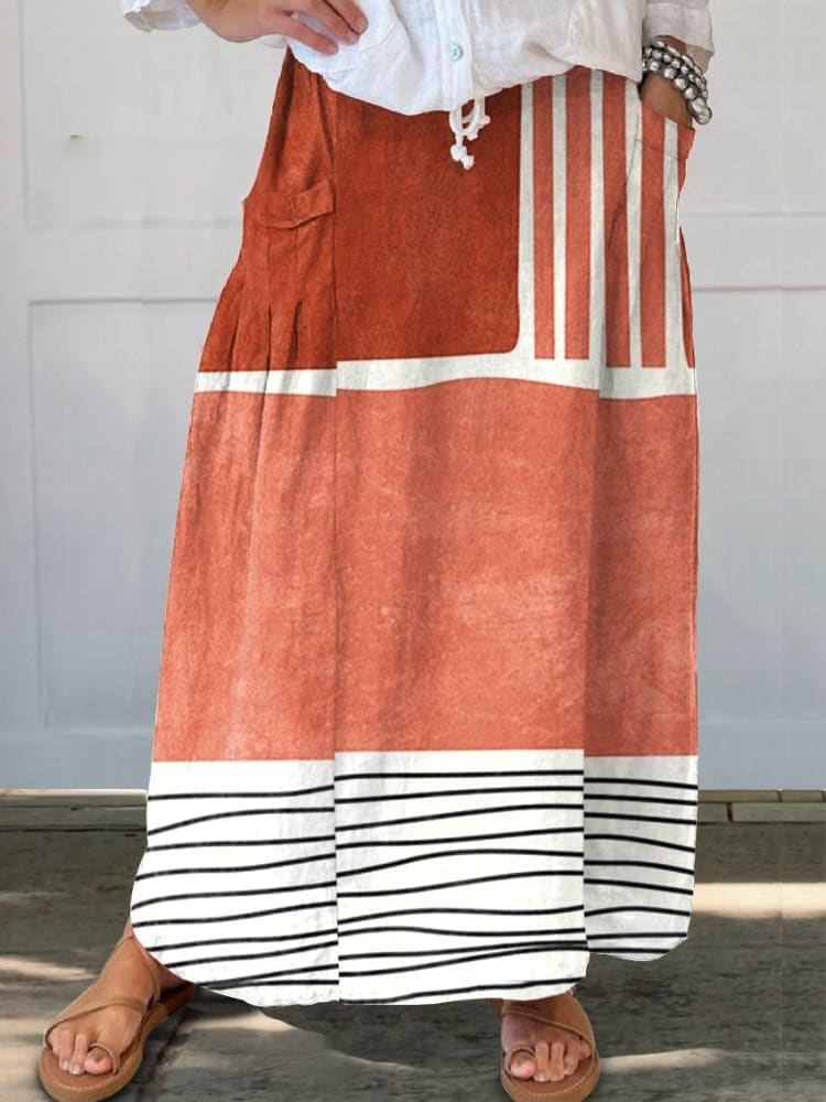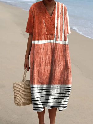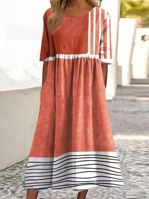 Women's Retro Minimalist Abstract Art Print Flowy Dress