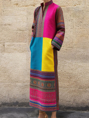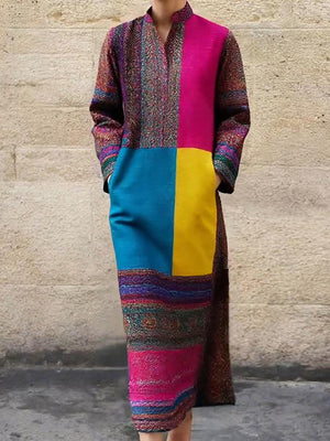 Women's Retro Printed Pocket Maxi Dress
