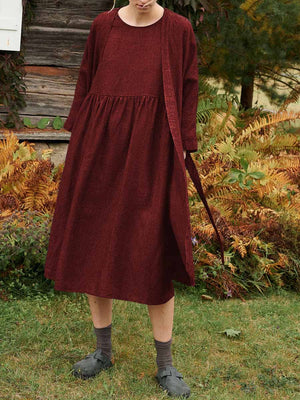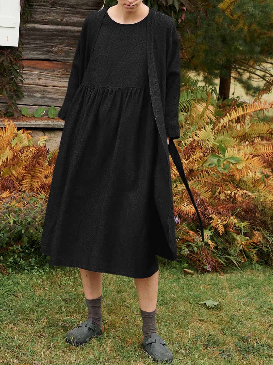 Women's Solid Color Casual Cotton Cardigan Vest Dress Two-Piece Set
