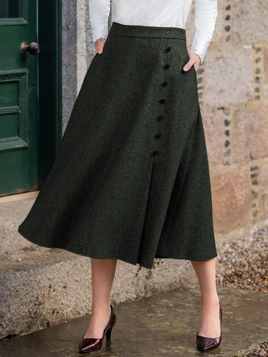 Women's Solid Color High Waist Casual Tweed A-Line Skirt