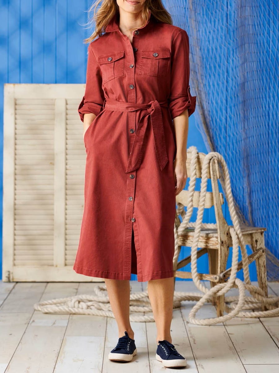Women's Solid Color Lapel Long Sleeve Casual Loose Cotton Shirt Dress