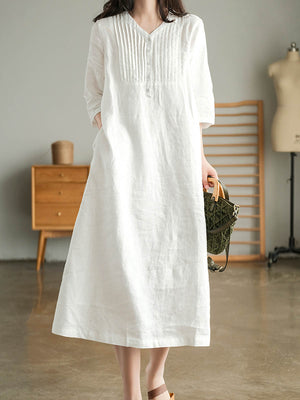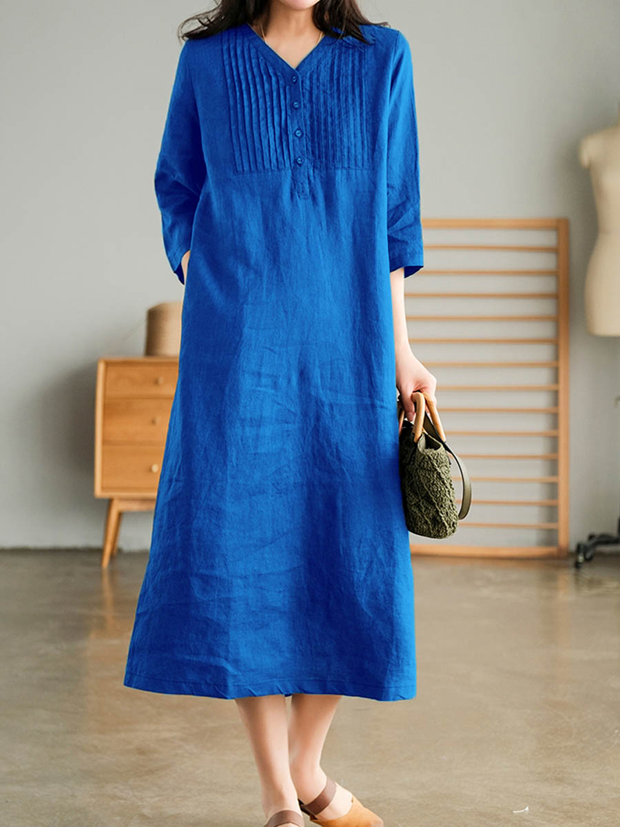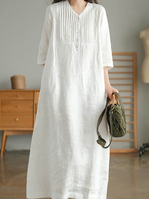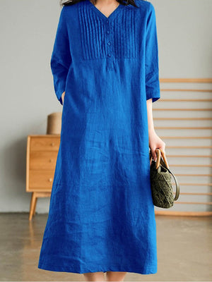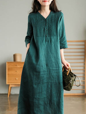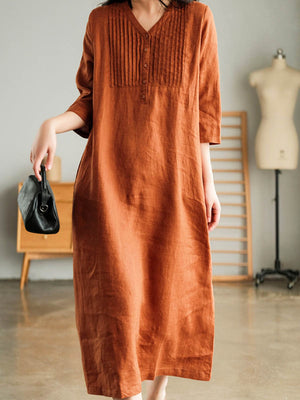 Women's Solid Color Loose Stylish Casual V-neck Long Dress