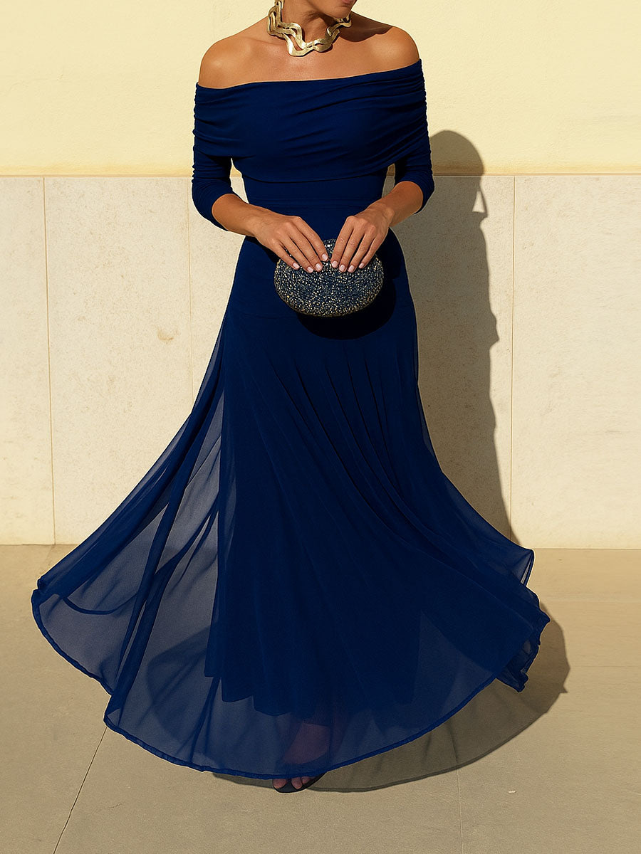 Women's Solid Color One-Shoulder Long Sleeve Casual A-Line Dress