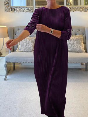 Women's Solid Color Round Neck Long Sleeve Velvet Casual Loose Dress