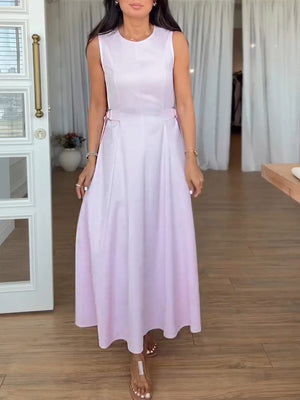 Women's Solid Color Round Neck Sleeveless Casual Cotton and Linen Vest Dress