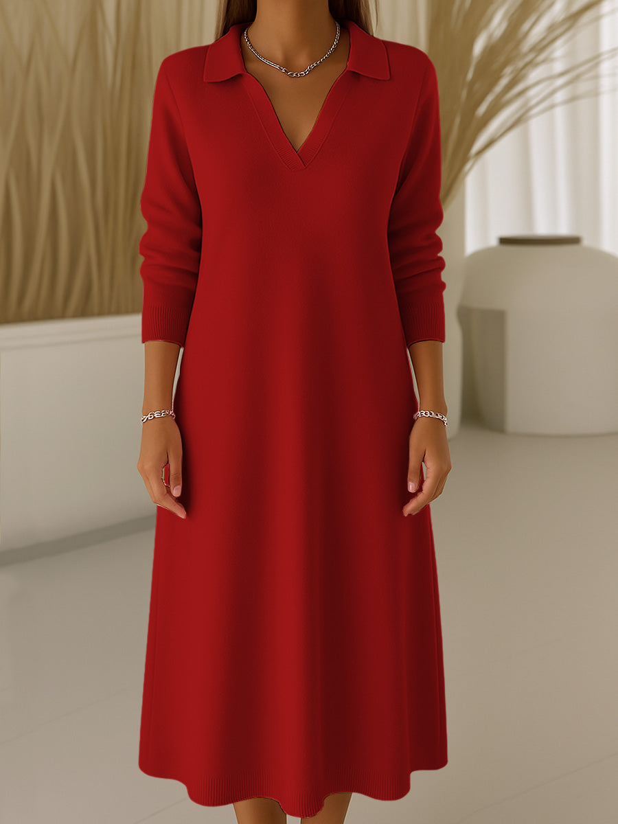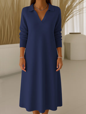 Women's Solid Color V-Neck Long Sleeve Casual Loose Knit Dress