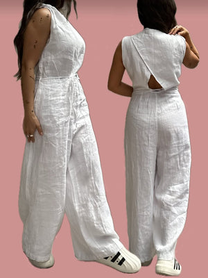 Women's Cotton and Linen Wide Leg Jumpsuit