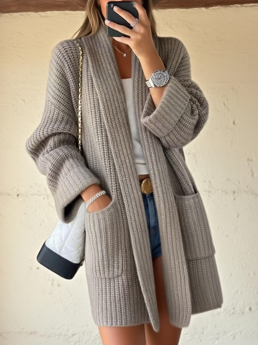 Women's Loose Thick-knit Pocket Cardigan Sweater