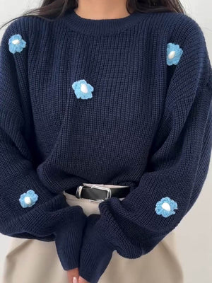Women's Solid Color Crew Neck Long Sleeve Casual Loose Sweater