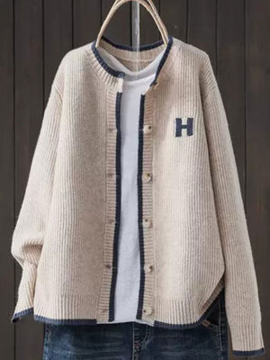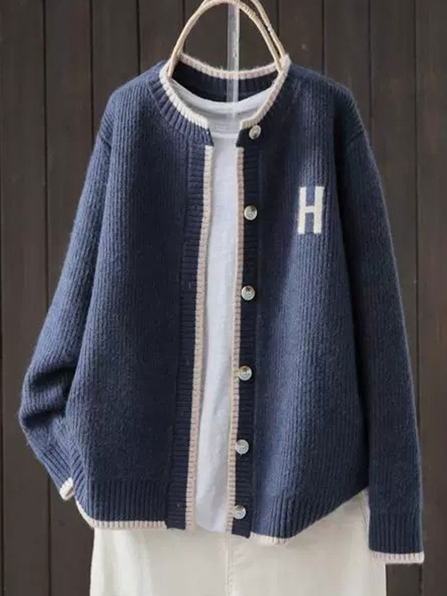 Women's Solid Color Round Neck Sweater Knitted Jacket