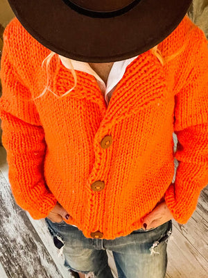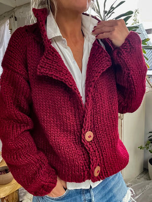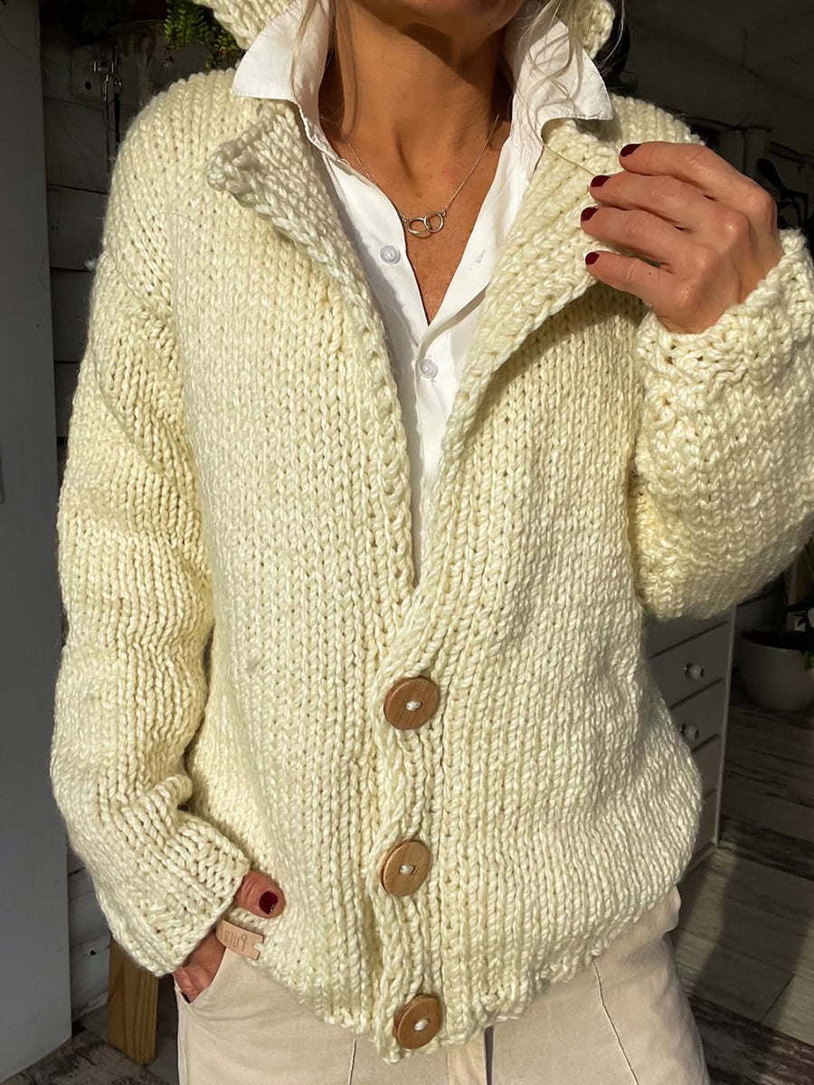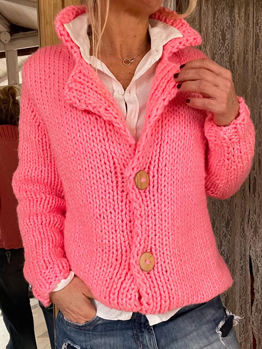 Women's Thick-knit Button Lapel Cardigan Sweater